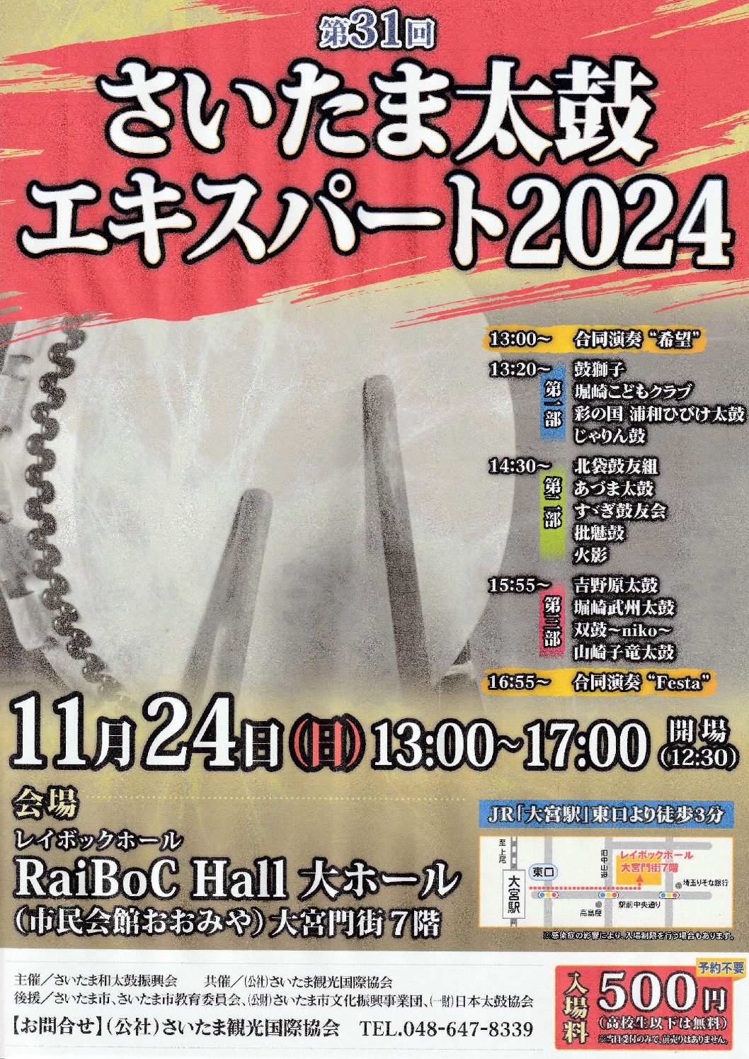 さいたま和太鼓振興会は11月24日午後1時から5時まで、第31回「さいたま太鼓エキスパート2024」を、さいたま市大宮区のRaiBoC Hall(市民会館おおみや)大ホールで開催する。 このイベントは、力強い演奏を通 […]