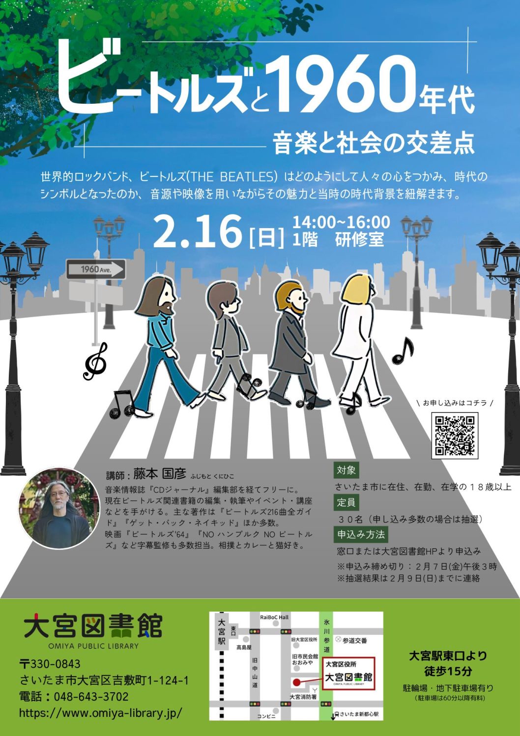 Continue Reading大宮図書館は2月16日午後2時から4時まで、「ビートルズと1960年代~音楽と社会の交差点」を同館1階研修室で開催する。世界的ロックバンド、ビートルズ(THE BEATLES)がどのようにして人々の心をつかんで時代のシ […]