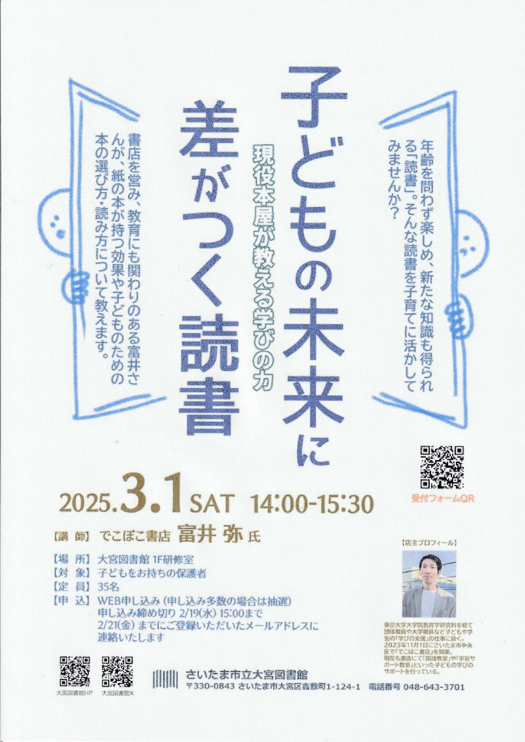 Continue Reading大宮図書館は3月1日午後2時から3時半まで、年齢を問わず楽しめ、新たな知識も得られる〝読書〟を子育てに生かすことなどを目的に、「子どもの未来に差がつく読書~現役本屋が教える学びの力」を同館1階研修室で開催する。講師はさ […]